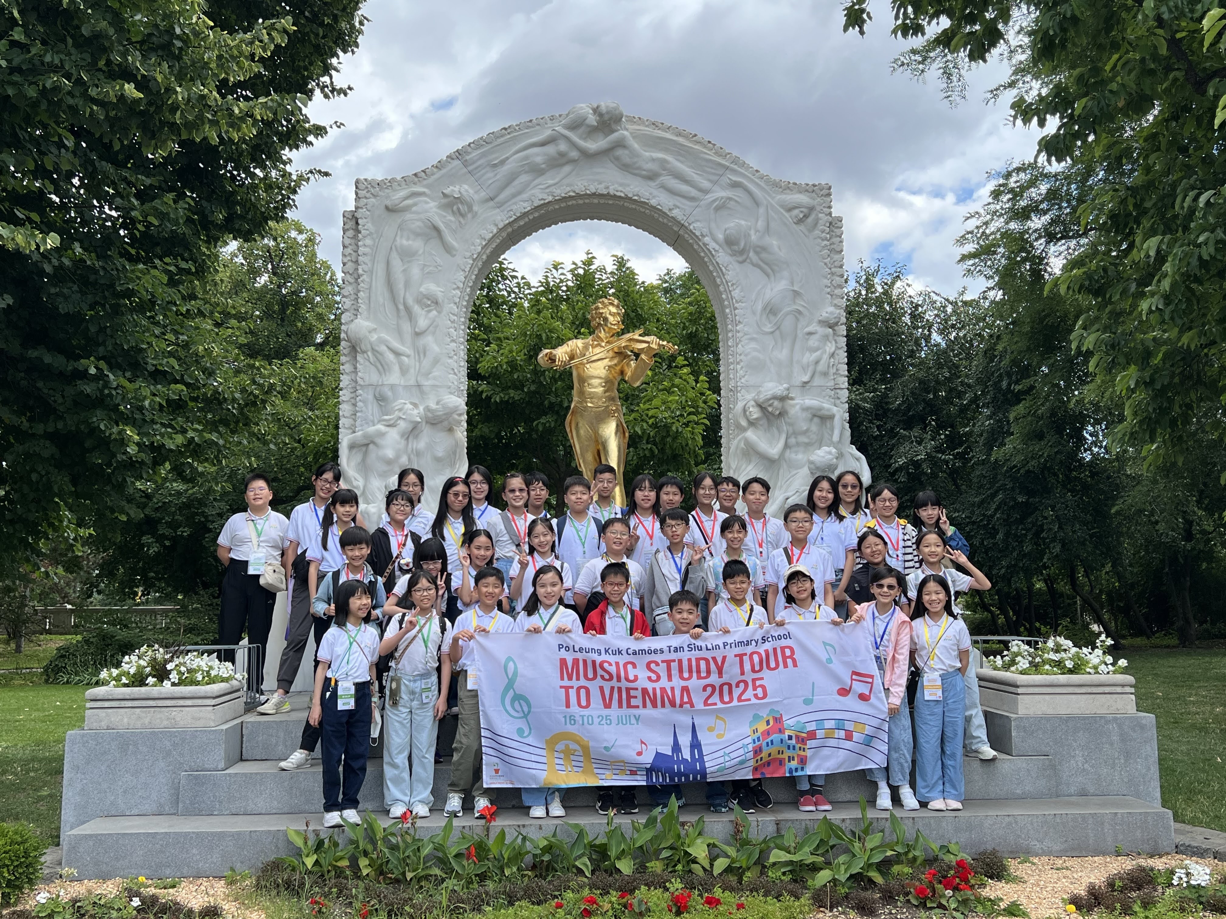 | 為了進一步發展學校合唱團,提升學生的聲樂技能和合唱技巧,在2025年的暑假,四十位同學於四位老師的帶領下來到舉世聞名的「音樂之都」維也納,進行為期十天的遊學之旅。同學們遊覽了多處名勝,並在當地接受了音樂訓練,沉浸在豐富的音樂傳統文化中。完成訓練後,他們更在聖彼得教堂舉行了一場小型音樂會作公開演出,同學們都樂在其中。這次遊學旅程可說是同學生命中一段難忘和珍貴的回憶! | ![]() ![]() |